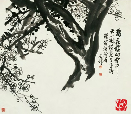 王个簃擅以篆籀之笔入画,用笔浑厚刚健,笔势静蕴含蓄,潇洒遒劲,他的作品笔墨酣畅,古朴醇厚,画面气势博大,构图严谨,变化多样。