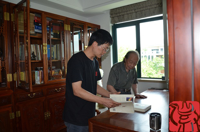 2014年王紫庐(左)杭州拜访恩师刘赤城先生