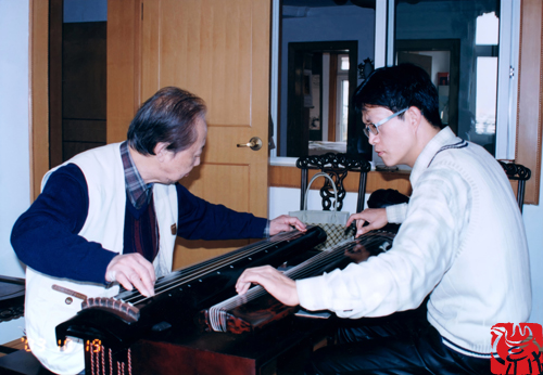 2003年王紫庐(右)与恩师刘赤城先生一起弹琴