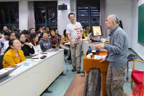 11月12日,天气渐寒,冬日清冽的气息扑面而来。二教410永远像一个等候琴友归来的故乡,像是补充我们知识消耗的充电宝宝,又像是一个让人感到宽广浩瀚又稳定安详的臂膀。每次上课前,同学们早早就来到了教室,基本上课前的一小时,教室便座无虚席了,这次也不例外,可是例外的是,这次授课老师基本和最早到达教室的同学同步,为的便是确认好教室一切设备、上课所需之用具全部妥当,治学严谨之风由此可见。这便是陈长林老师,陈老师在开课的前两个小时便抵达了教室,为我们带来珍贵的一讲——《古琴泛音的数目与徽位》。
