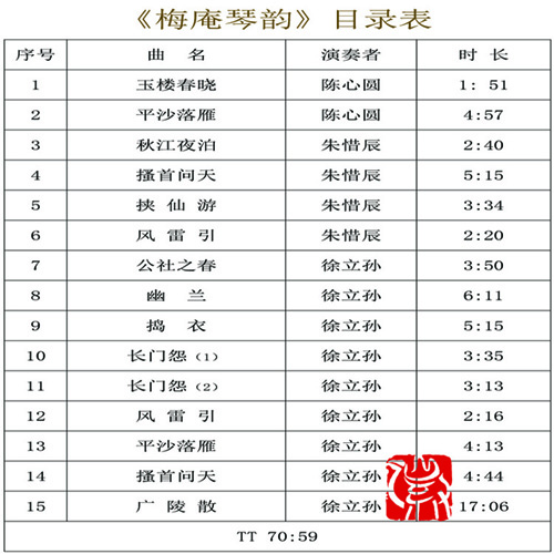 【雨果】《梅庵琴韵》CD-徐立孙、陈心园、朱惜辰