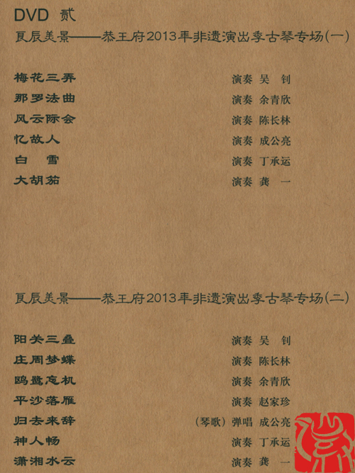 【编者按】中国昆剧古琴研究会与文化部恭王府管理中心联合、由中国文采声像出版公司出版发行。集结自2010年以来中国昆剧古琴研究会承办的4场古琴音乐会现场录像。其中既有当代顶级古琴大师,也有一些中青年琴家的演奏作品。